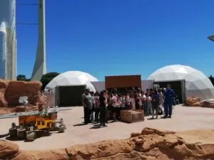 Les jeunes chercheurs et chercheuses en herbe ont ensuite assisté à la danse des robots Perseverance et Zhurong sur le tout récent terrain martien de la Cité de l’espace avant d’y installer leur propre maquette !