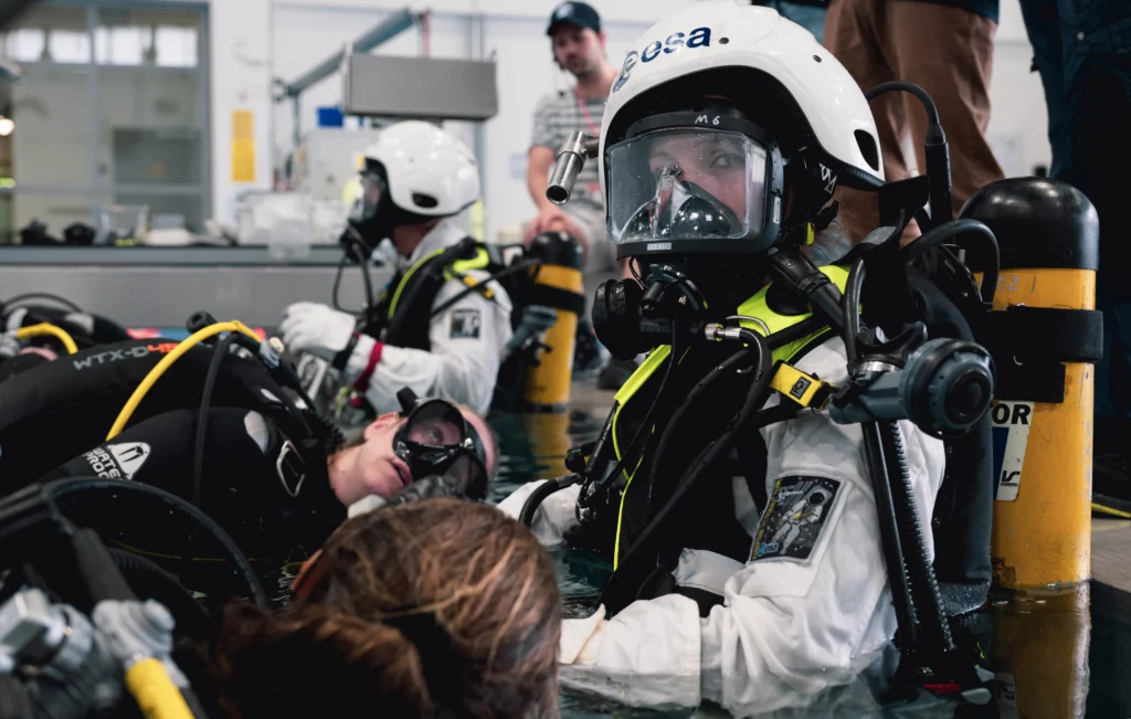 En 2022, l’Agence spatiale européenne a sélectionné 17 nouvelles recrues astronautes parmi plus de 22 500 candidatures. Si cette sélection est déjà une grande réussite, ce n’est que la première étape de la préparation des astronautes avant de rejoindre la Station spatiale internationale (ISS). D’abord au centre d’entraînement des astronautes de l’ESA à Cologne puis au Centre spatial Lyndon B. Johnson de la Nasa à Houston, les astronautes vont apprendre à réaliser des expériences en micropesanteur, à entretenir la station spatiale et même à arracher une dent en cas d’urgence. Ce fut notamment le cas de l’astronaute française Sophie Adenot qui a suivi un entrainement intense durant 2 ans et 10 mois avant de rejoindre l’ISS, un record de rapidité.